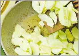 4. En otra sartén freír las manzanas troceadas y la mantequilla restante.